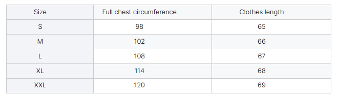Size: S, M, L, XL, XXL
